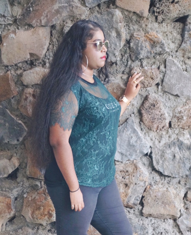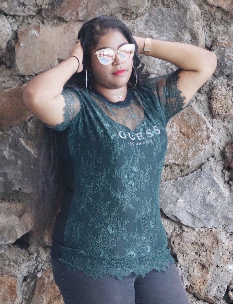 Il y avait le mĂȘme modĂšle tout en noir mais moi ce qui m’a plu surtout c’Ă©tait ce vert-bleu qui s’accorde parfaitement avec le noir du dessous et comme le titre l’indique les dĂ©tails ça compte ! tout ces dessins imprĂ©gnĂ©s dans cette dentelle qui a Ă©tĂ© travaillĂ© minutieusement franchement pour moi c’est une piĂšce unique et ça change des tops qu’on a l’habitude de voir que ce soit chez d’autres marques ou mĂȘme chez Guess.