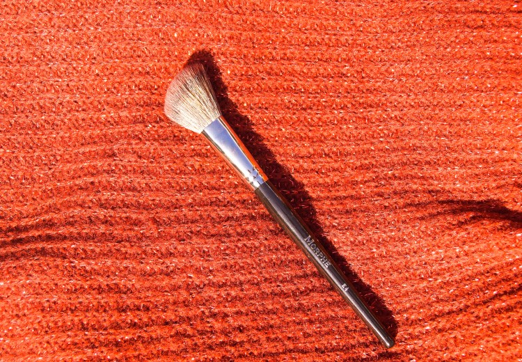On passe au blush ! j’utilise ce pinceau c’est le Morphe E4, j’adore utilisé ce pinceau parce qu’il a une forme qui permet d’appliquer son blush correctement et ça vous évite d’appliquer votre blush comme un clown 😂 parce que oui il y a encore des gens qui appliquent du blush en faisant deux gros ronds rose sur les joues 🤷🏻♀️ donc préférez un pinceau qui a déjà une forme qui vous aidera a appliquer votre blush comme il se doit c’est à dire en étirant votre blush jusque vos tempes et d’ailleurs avec ce type de pinceau vous pouvez même appliquer du bronzer donc vous avez un pinceau 2 en 1 😉