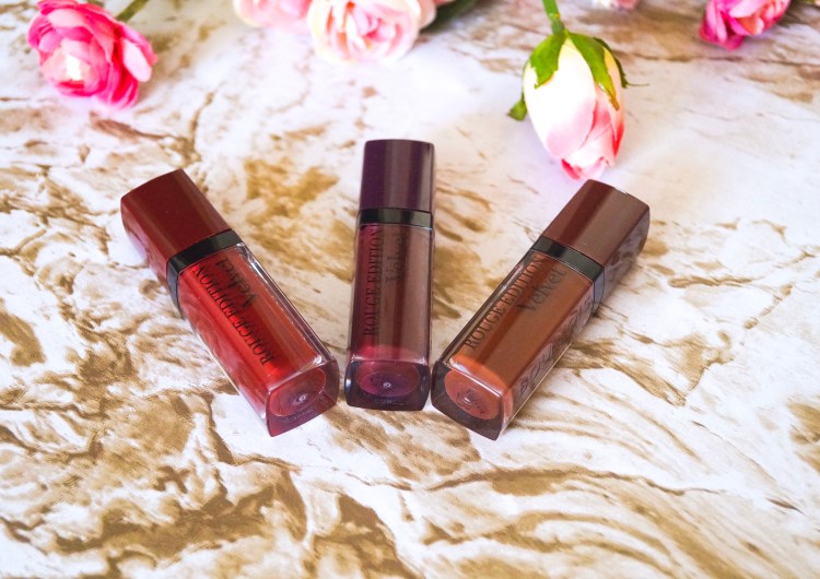 Il y avait une ancienne version du velvet au fini matte qu’une fois j’avais essayé et que je n’avais pas aimé car c’était trop matte c’est à dire qu’il était pas confortable du tout sur les lèvres mais alors ces Velvets là issu d’une nouvelle formule eh bien je les adore 😍  Cette nouvelle formule est trop bien, le rouge à lèvre a un fini matte mais avec une texture légère, souple, très agréable à porter au quotidien, il tient toute la journée et il ne dessèche pas les lèvres 😍 De gauche à droite vous avez le Dark Chérie qui est mon préféré, le Berry Chic et le Chocolat Corset par contre je sais pas si il y a d’autres teintes mais j’adorerais essayer les autres couleurs s’il y en a !