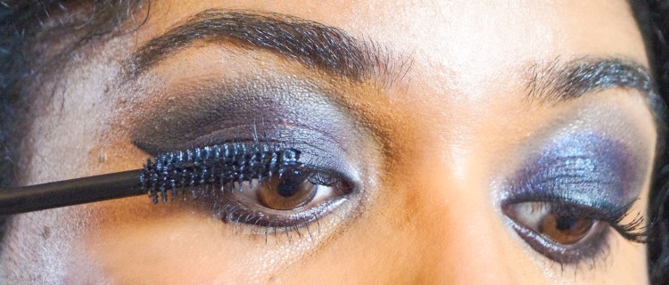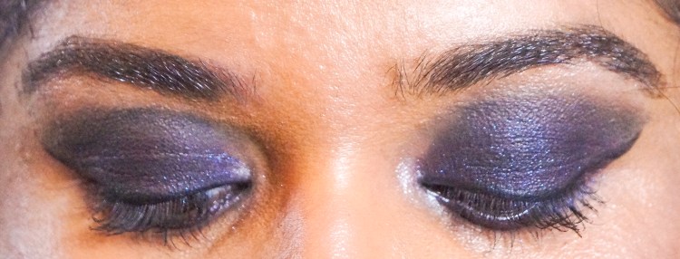 Mais j’ai quand même voulu essayer de créer un makeup avec la palette, j’ai pris un des fards qui était un bleu-mauve que j’ai mis sur toute ma paupière et dans le creux des paupières j’ai mis du noir. Sur la photo, comme il y avait de la lumière on peut quand même voir les petits pigments bleu-mauve mais en dessous c’est noir et si il n’y a pas assez de lumière on pourrait croire qu’en faite j’ai mis que du fards noir sur l’ensemble de ma paupière lol mais par contre les fards ont une très bonne tenue et sont facile à travailler. Je vous conseillerai cette palette plutôt pour réaliser un makeup de soirée 🙂