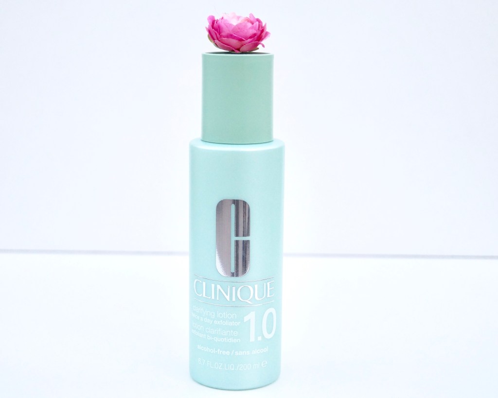 The next step is to exfoliate but don’t worry it’s not really an exfoliating but it’s an exfoliating lotion and it will kindly exfoliate your face and neck. And I use this clarifying lotion twice a day exfoliator which is alcohol-free.