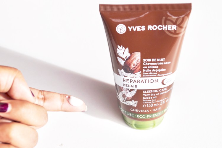 I have never tried any haircare from Yves Rocher and thanks to them, I tried this amazing product 🙌🏼 so it’s a haircare and repair cream for very dry or damaged hair or for both and it’s a sleeping care so to use at night before going to Neverland ✨ and there’s no need to wash your hair after using this ! so if you have a meeting the next morning don’t worry 😏 and it is mentioned that it does not stain pillow and I confirm it so no worries for the laundry neither !